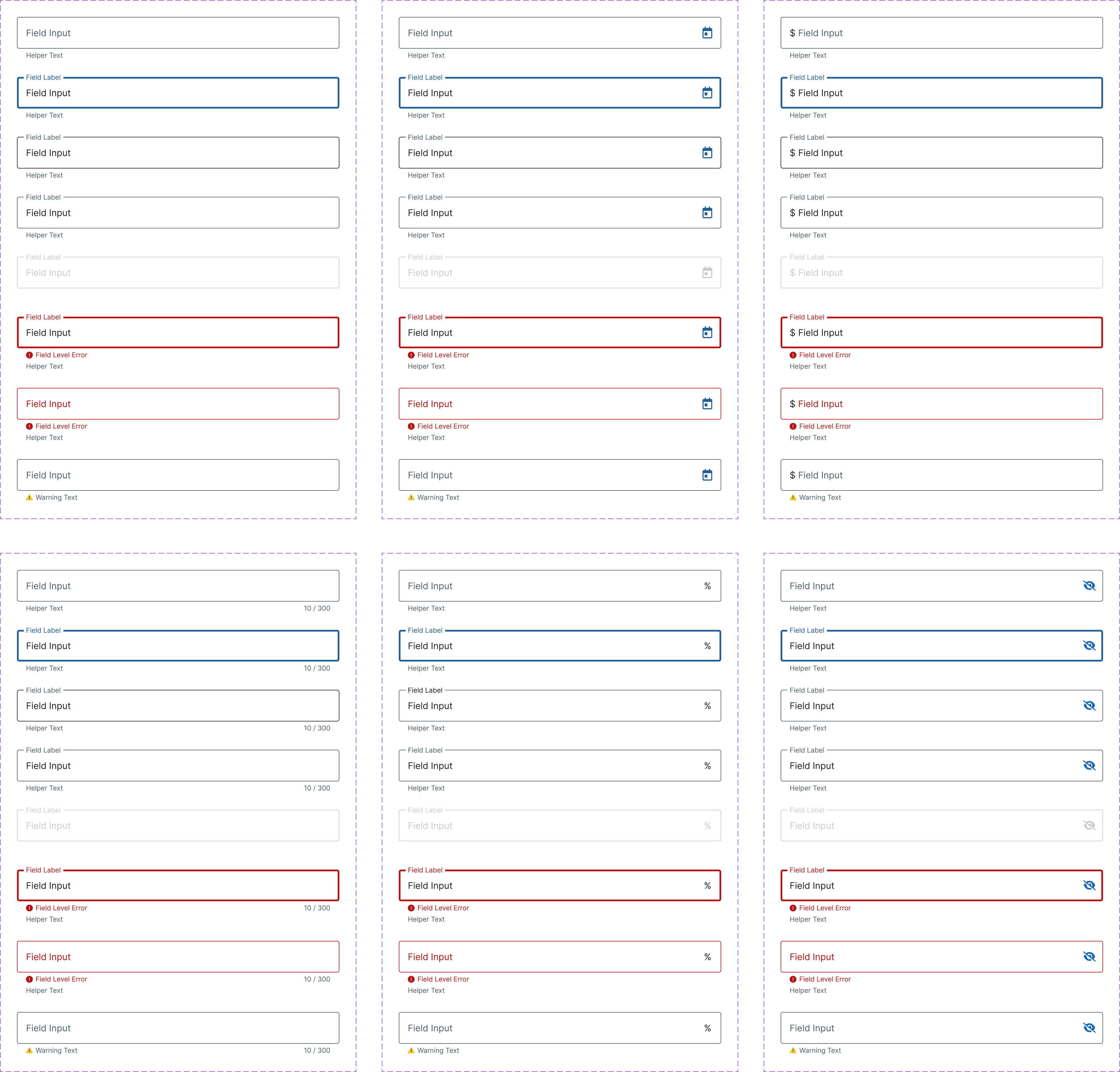 For example, I built each input type as a component with its own variants, which makes it difficult to manage from a design system level and more work for our users to find the component they need.