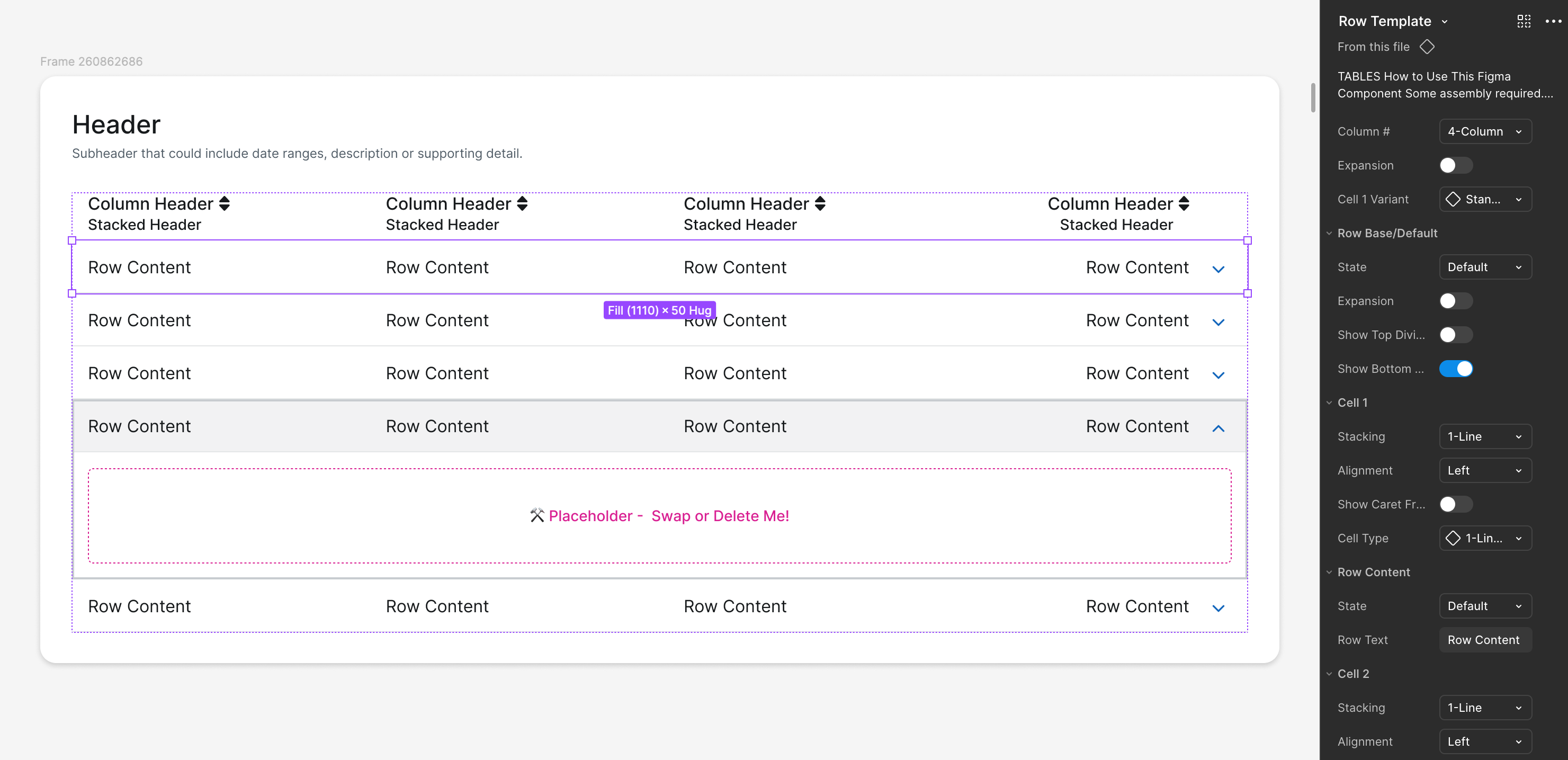 👉 Solution: Components with placeholders are built with building blocks and nested base components. This allows designers to detach if needed while still maintaining correct padding and staying linked to the library updates, ensuring that the Figma component matches the coded component, reducing the likelihood of overrides.